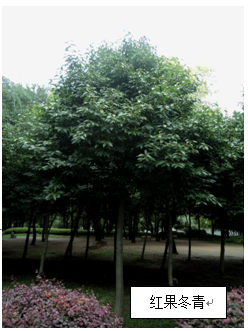 3、红果冬青属慢生树种,虽然枝干有很强的萌发力,但生长量有限,冠形破坏后的恢复期长,通常需3-5年,所以起苗时土球的直径应是树干胸径8-10倍,忌挖野生苗,用圃地苗,起苗后结合适当的疏枝和摘叶,以便保持较好的冠形。