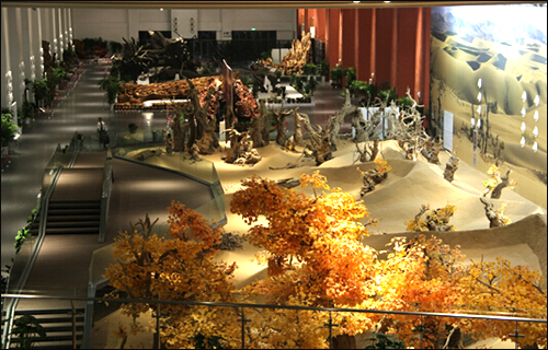 为了尽量将最原始、最逼真的风貌呈现出来,这片大漠胡杨林中的每一粒沙子,每一棵树,都来自千里之外的内蒙古原产地。站在这些千年胡杨林面前,你的心灵会接受庄严与神圣的锻打,你会忽然悟彻生命的壮丽与永恒其实是无声的。