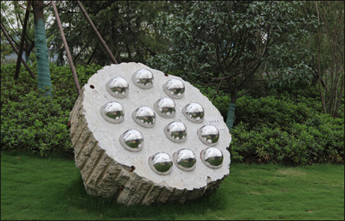 譬如利用搅拌机剩余的混凝土形成的“假山石”,混凝土桩头变成的休息凳,废弃钢筋加工成的艺术品等。