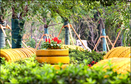 和旧轮胎一样,园内不少小景都是建筑弃料经过创意设计,化腐朽为神奇的作品。