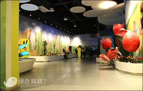 在凤眼莲的旁边,陈列着一排惟妙惟肖的仙人掌模型。沙漠广袤无边,一眼望不到头,生命力顽强的仙人掌孤独地站立在沙地上,从不向恶劣的环境屈服。小朋友你知道么?仙人掌科植物也曾经有宽大的叶子,但为了适应沙漠干燥的气候,控制蒸腾作用,它们这才将叶子退化成浑身的刺啦。